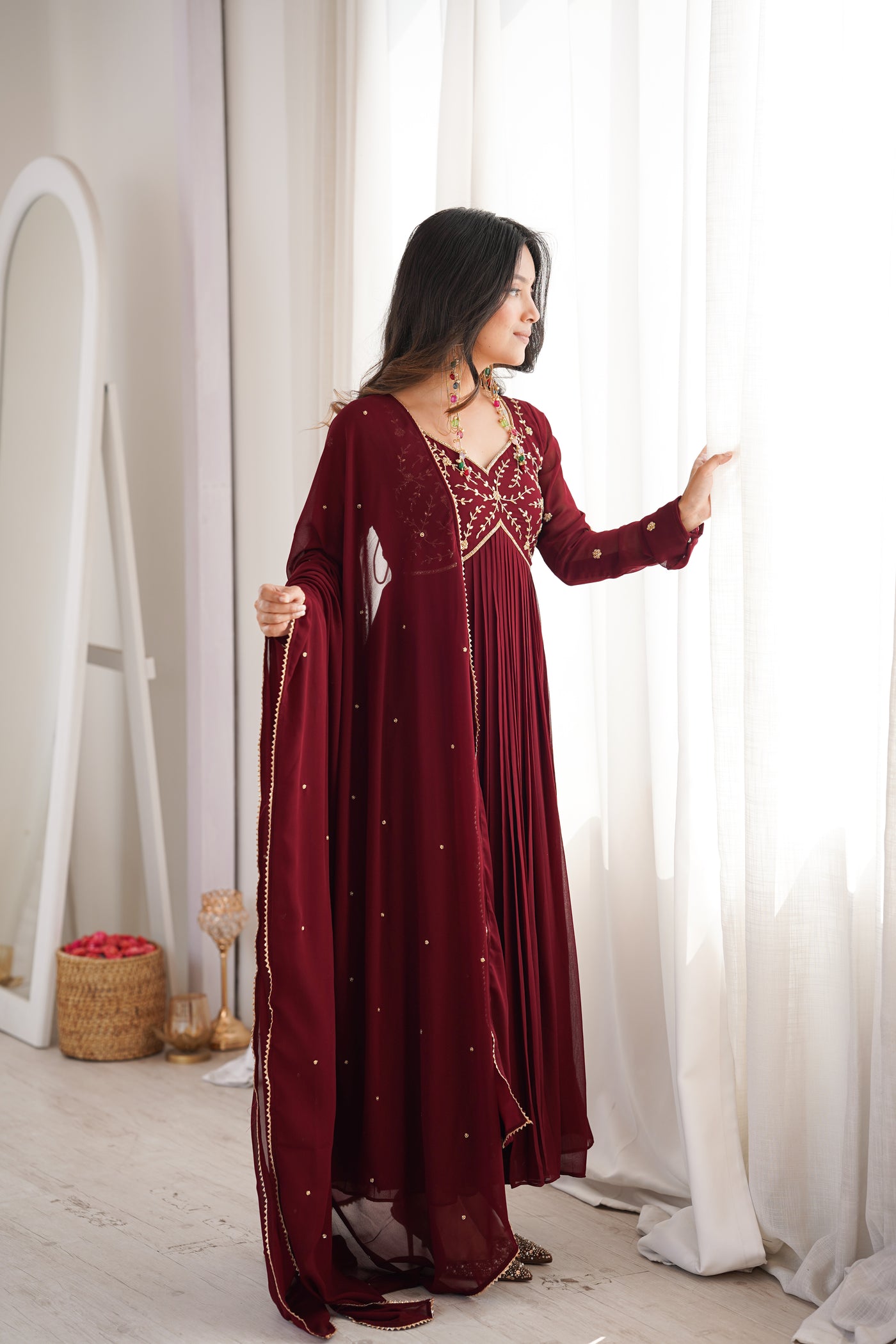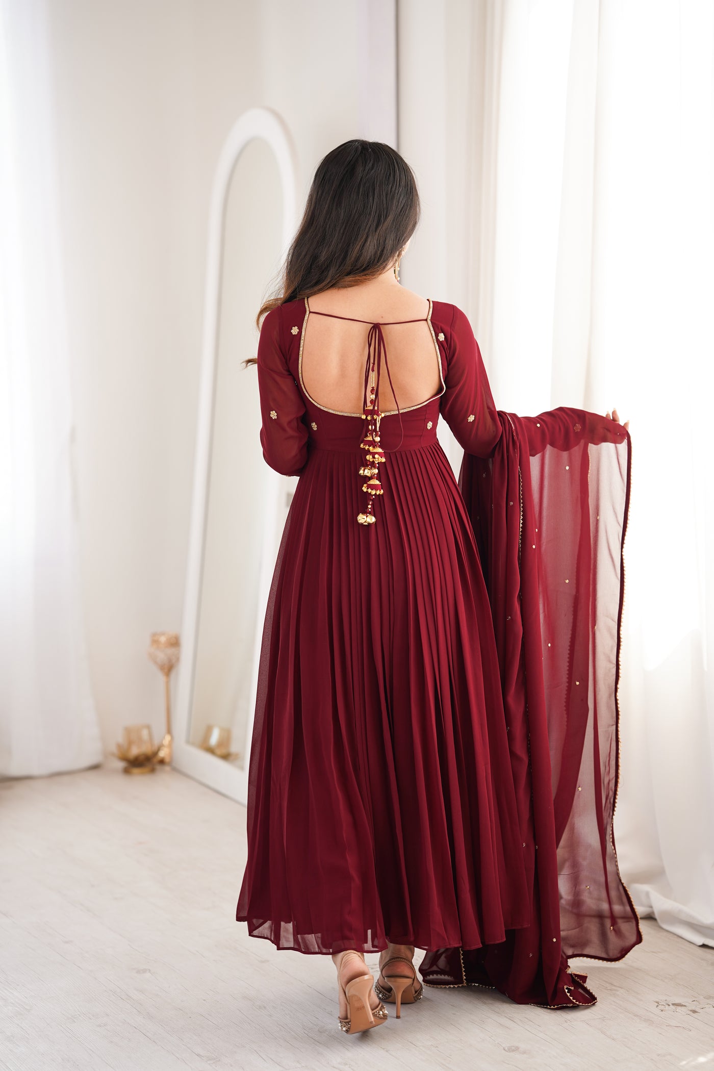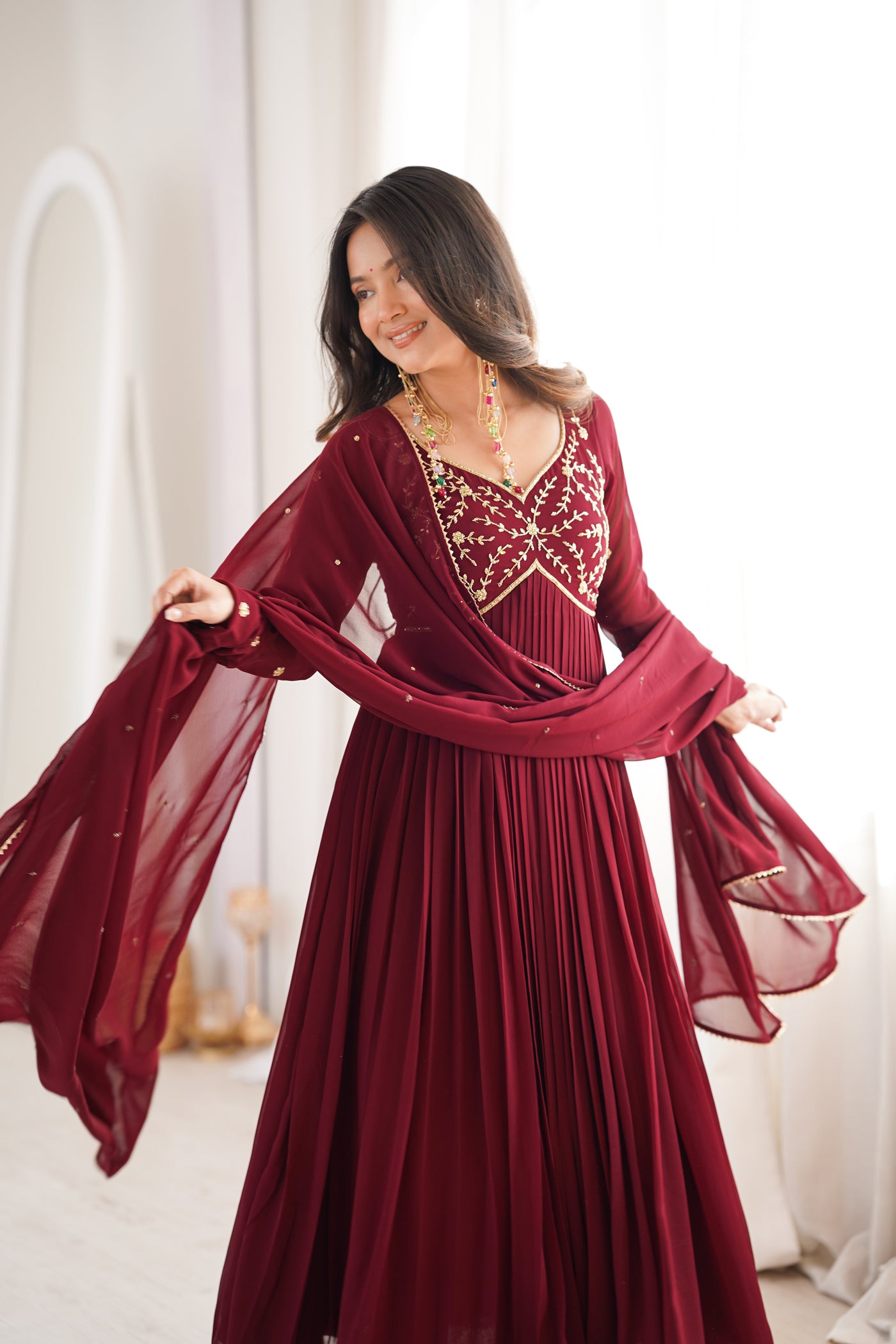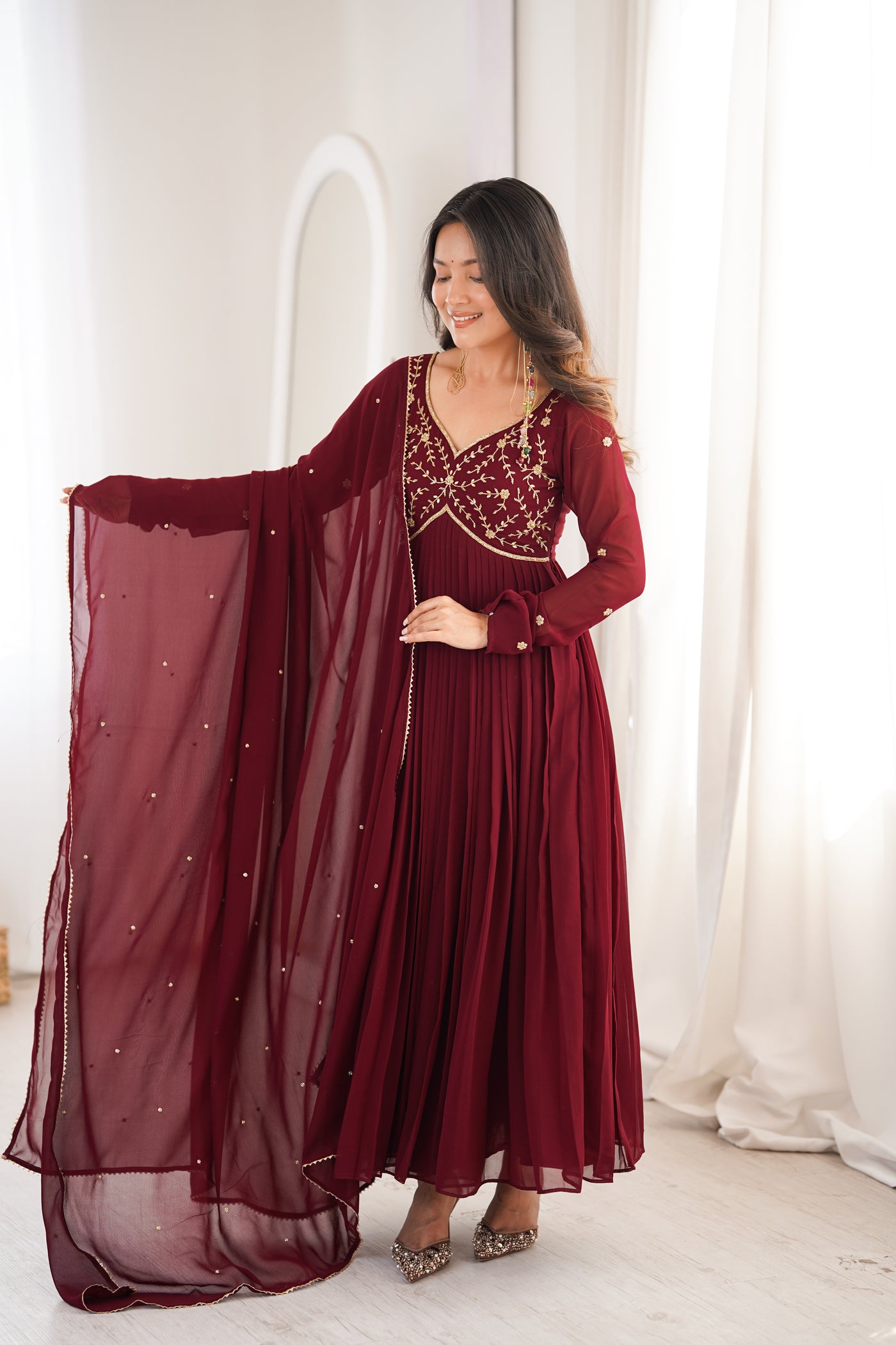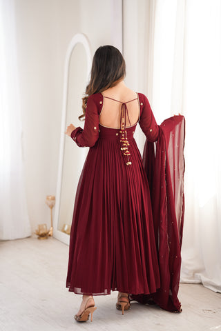 Model Wearing size: SmallTop: Georgette With Cotton LiningBottom : CottonDupatta Fabric: Georgette Suit Length : 50 inchBottom: 39 inchProduct with side zip.