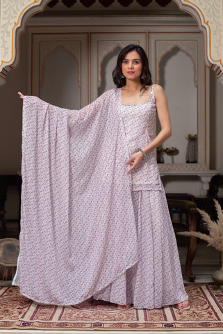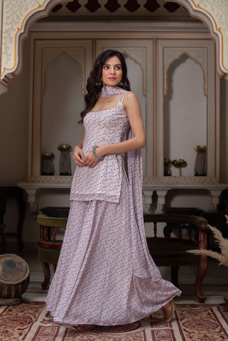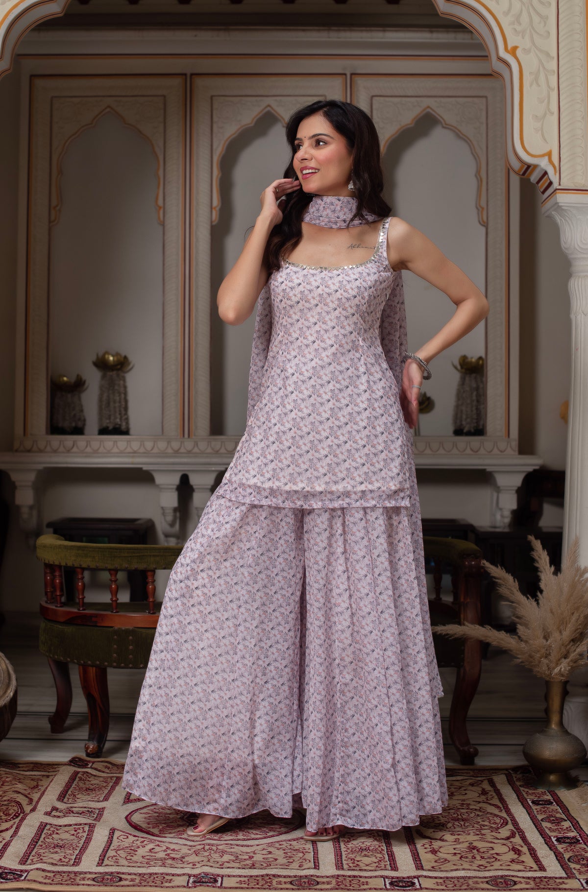 Model Wearing size: SmallTop: Georgette With Cotton LiningBottom : CottonDupatta Fabric: Georgette Kurti Length : 30 inchBottom: 39 inchProduct with side zip.